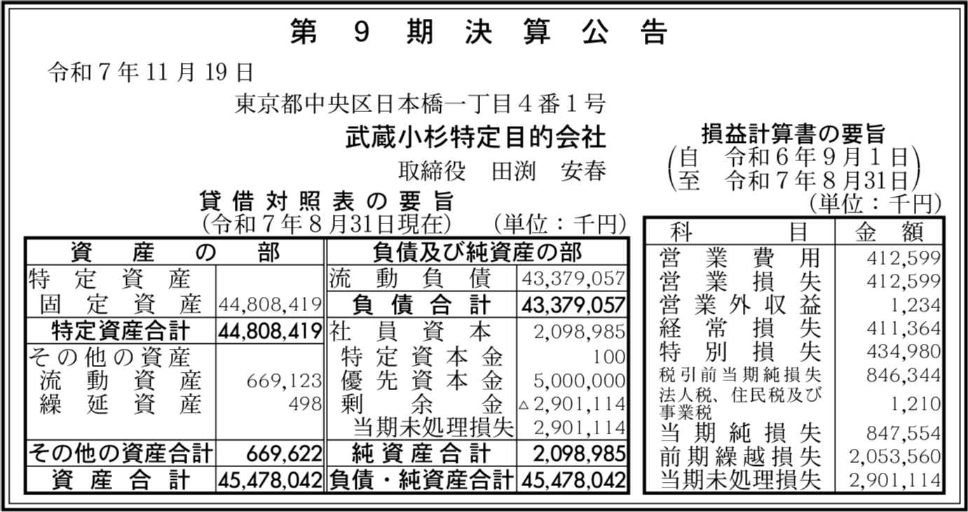| 会社名 | 武蔵小杉特定目的会社 |