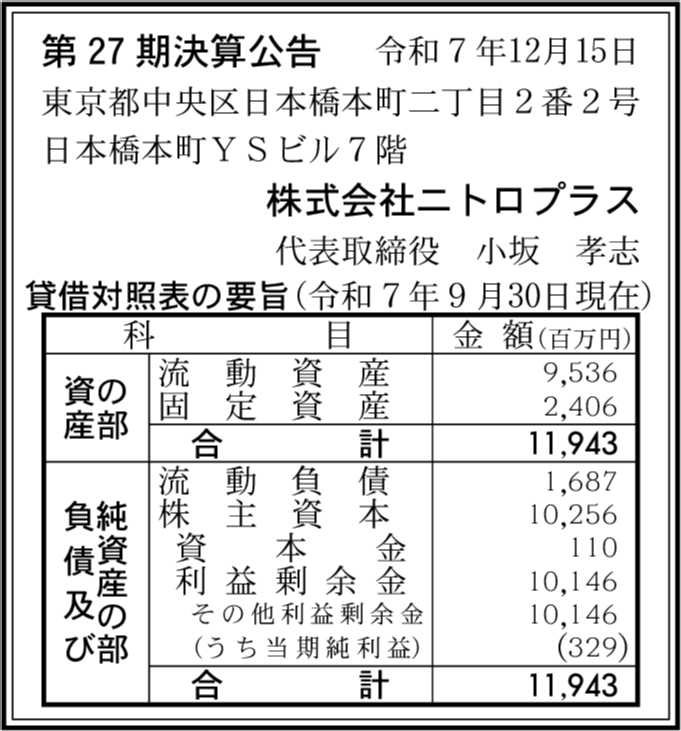 遠山偕成株式会社 東京都中央区 【2025年9月期】 |