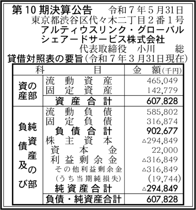 | 会社名 | アルティウスリンク・グローバル・シェアードサービス株式会社 |