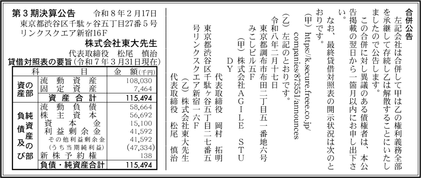| 会社名 | 株式会社東大先生 |