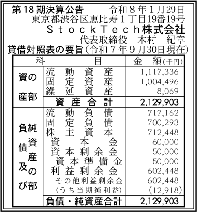 | 会社名 | StockTech株式会社 |