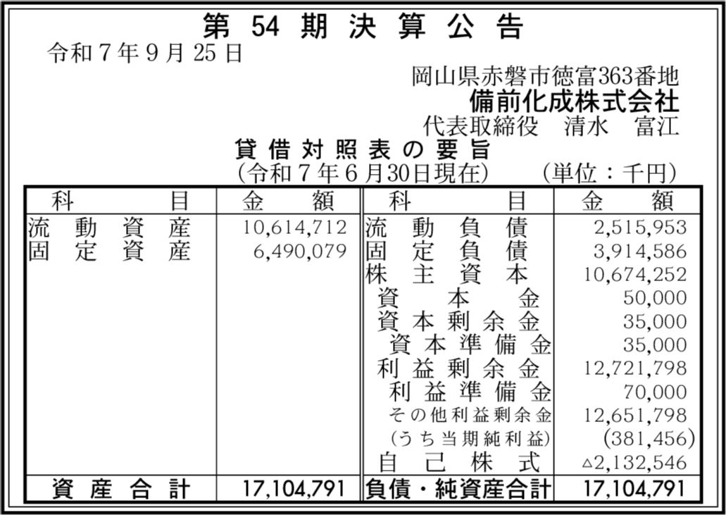 | 会社名 | 備前化成株式会社 |