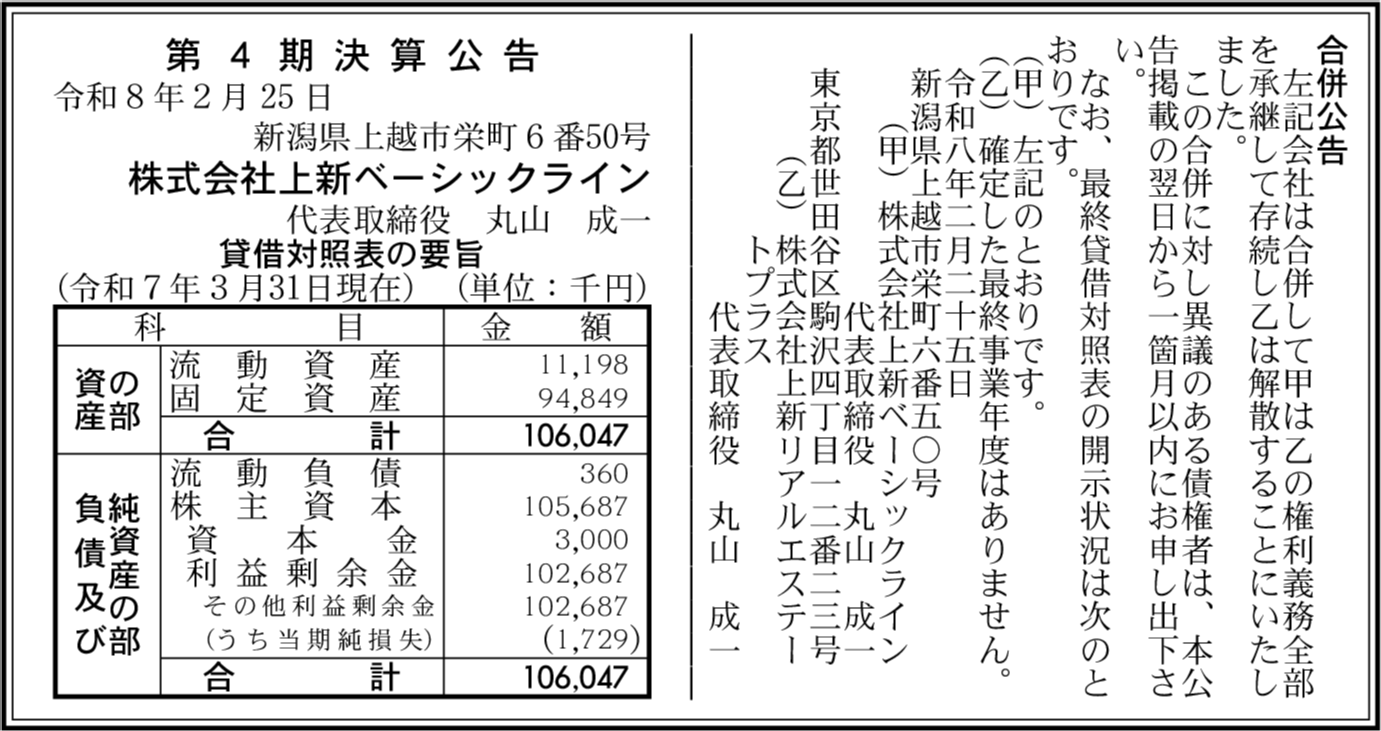 株式会社上新リアルエステート 東京都世田谷区 【2024年3月期】 |
