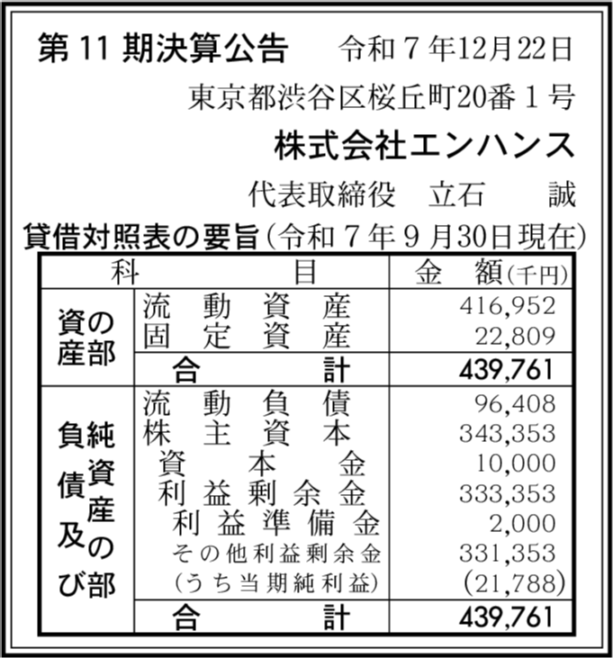 株式会社New B 東京都渋谷区 【2025年9月期】 |
