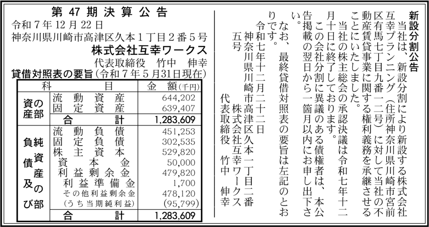 株式会社シラスリアルティ 川崎市高津区 【2025年1月期】 |
