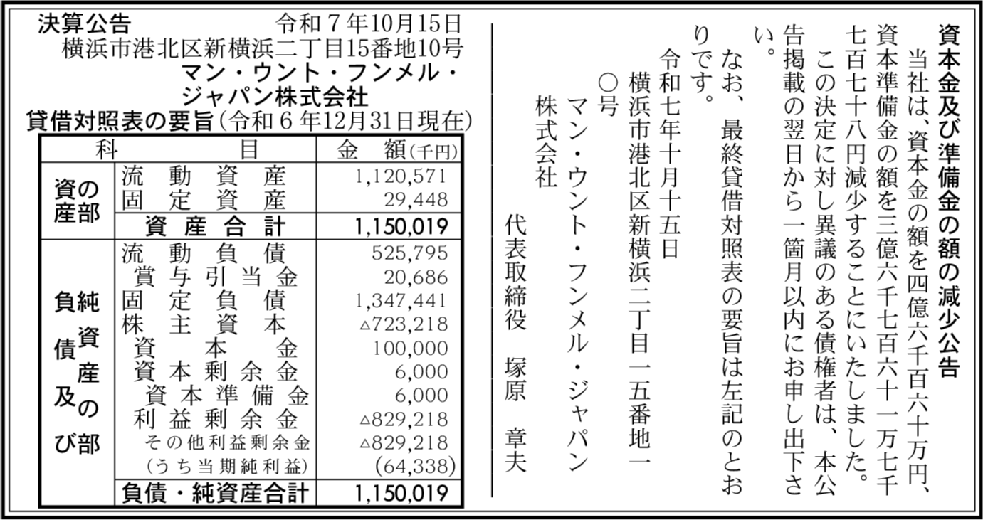 会社名 | マン・ウント・フンメル・ジャパン株式会社 |