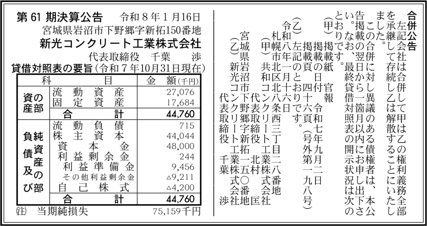 | 会社名 | 新光コンクリート工業株式会社 |