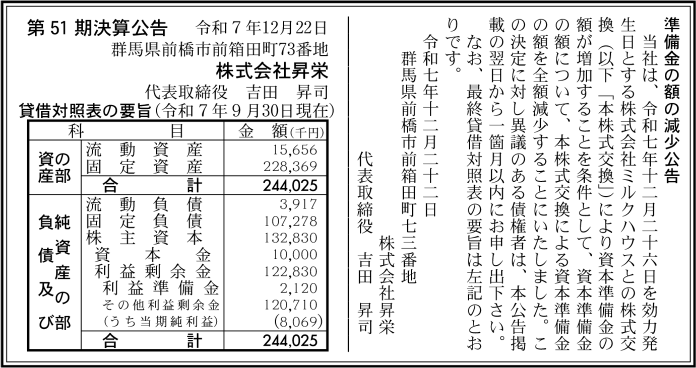 株式会社共進 群馬県前橋市 【2025年7月期】 |
