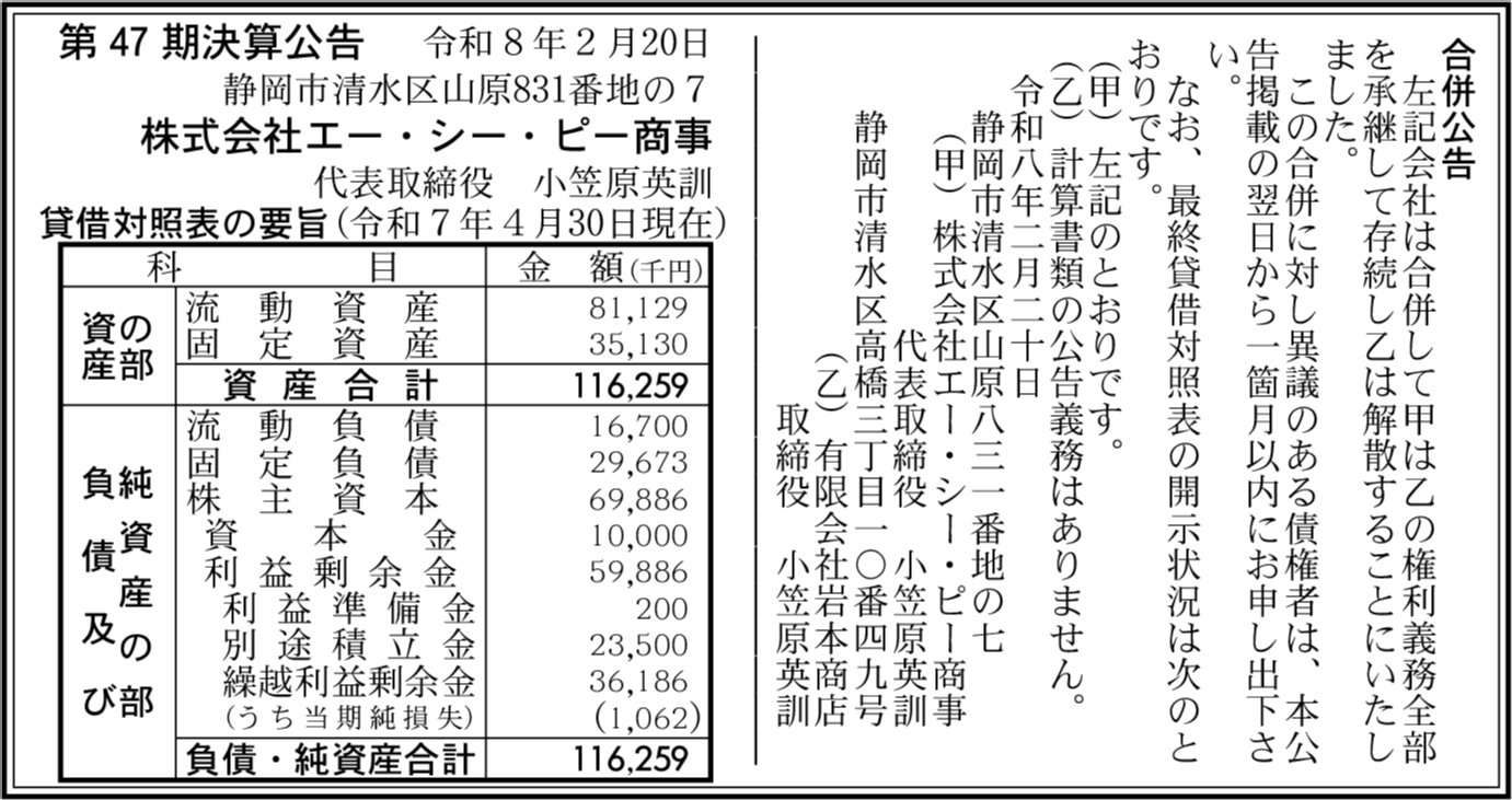 | 会社名 | 株式会社エー・シー・ピー商事 |