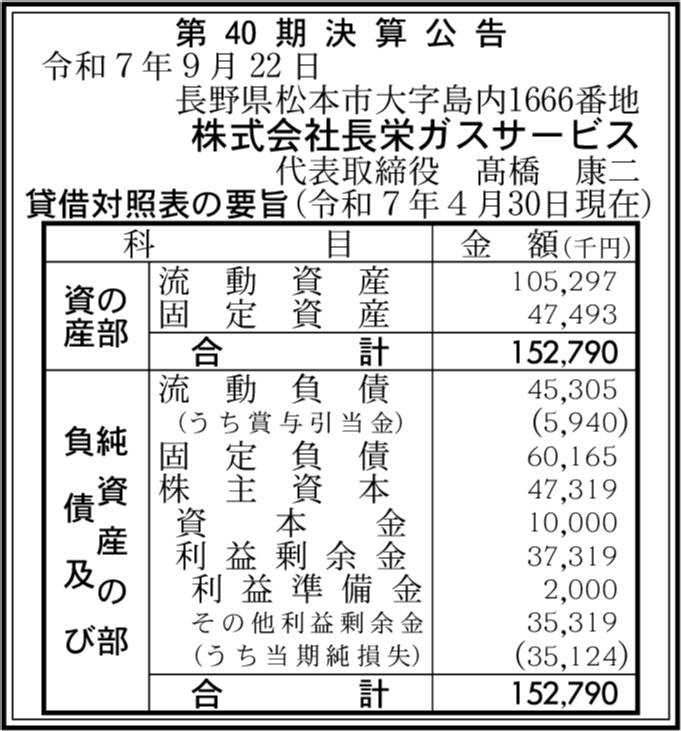 株式会社全国長寿会 長野県松本市 【2025年7月期】 |