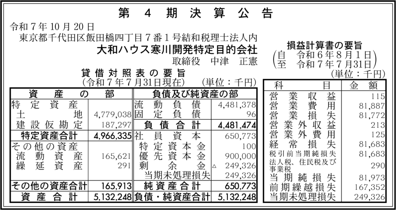 | 会社名 | 大和ハウス寒川開発特定目的会社 |