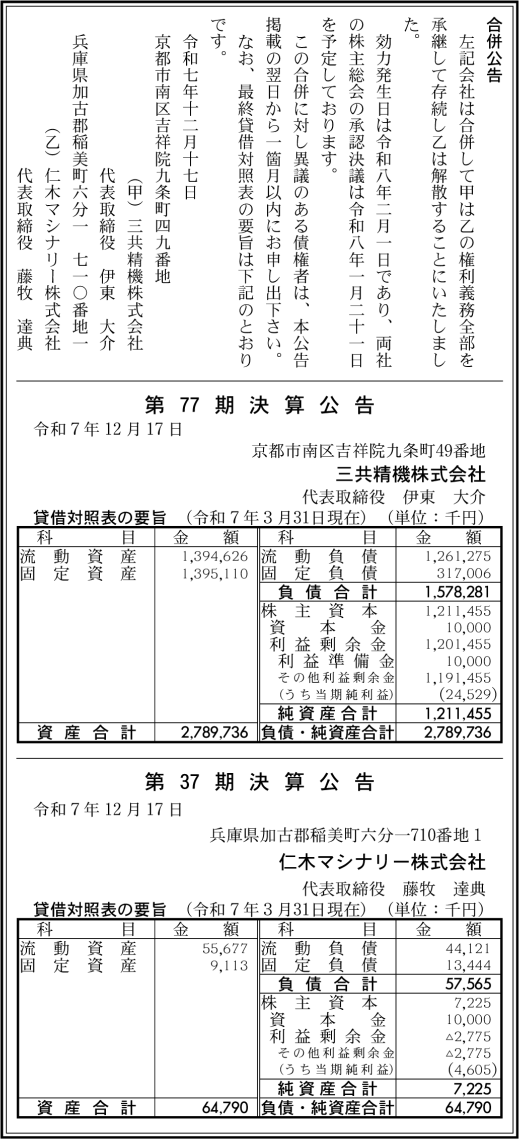 株式会社片岡製作所 京都市南区 【2025年1月期】 |