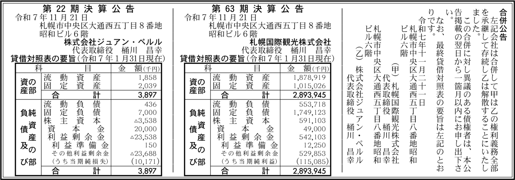 株式会社ジュアン・ペルル 札幌市中央区 【2025年1月期】 |