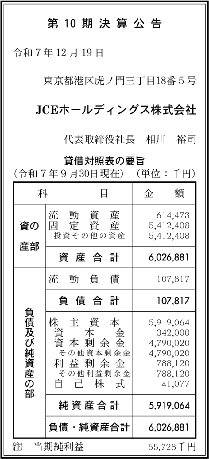 | 会社名 | JCEホールディングス株式会社 |