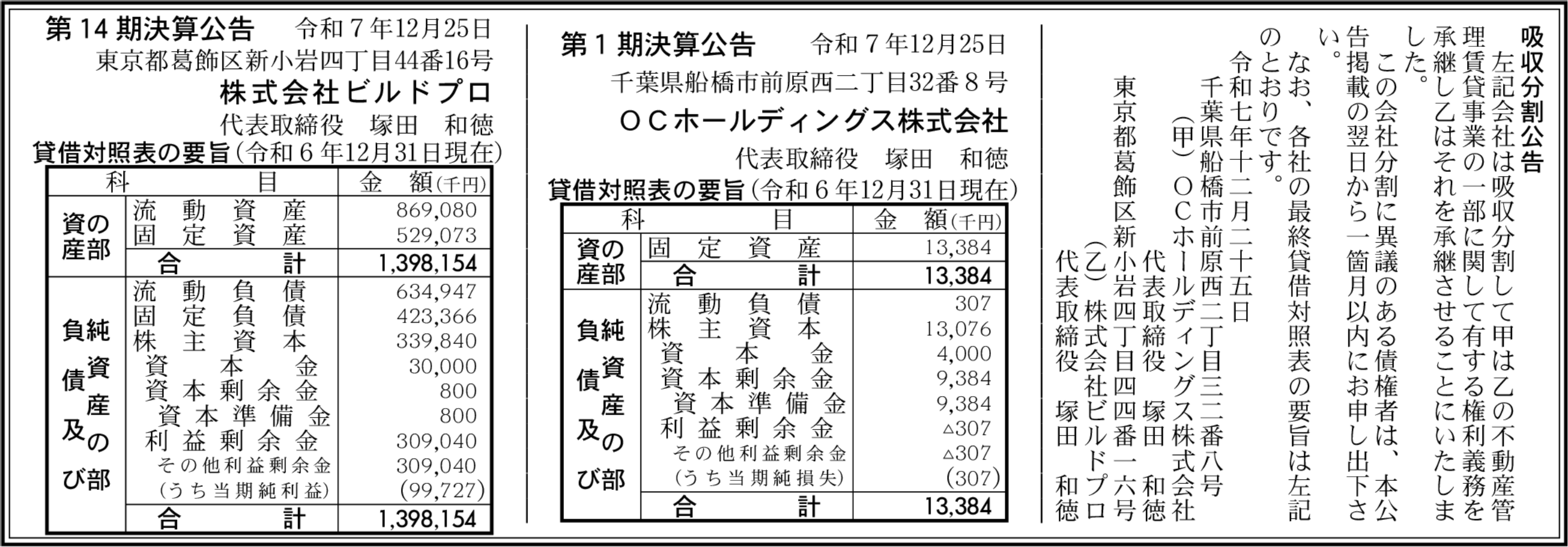 株式会社ビルドプロ 東京都葛飾区 【2024年12月期】 |