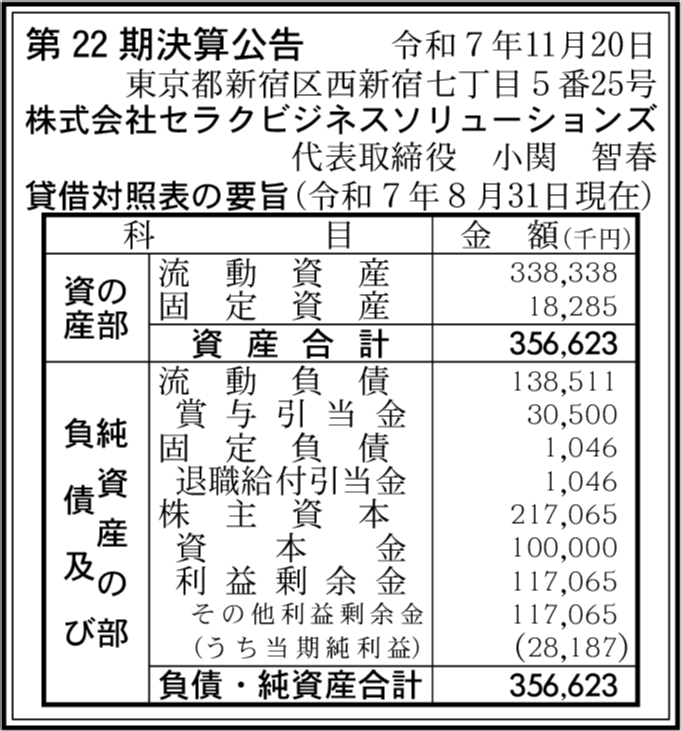 株式会社セラクCCC 東京都新宿区 【2025年8月期】 |