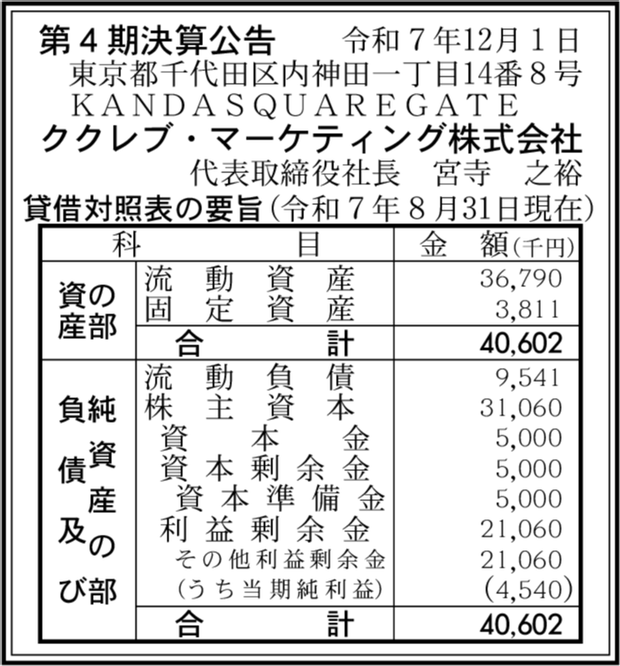 | 会社名 | ククレブ・マーケティング株式会社 |