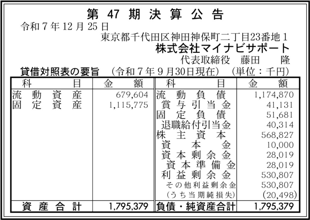 | 利益剰余金 | 5億3,080万7,000円 (▲16.26%) |