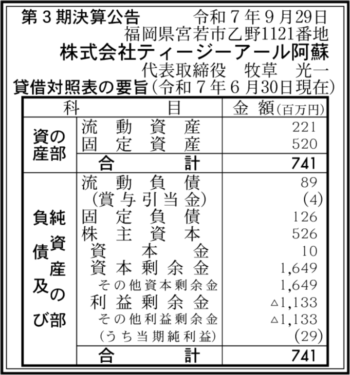 株式会社ティージーアール大分 福岡県宮若市 【2025年6月期】 |