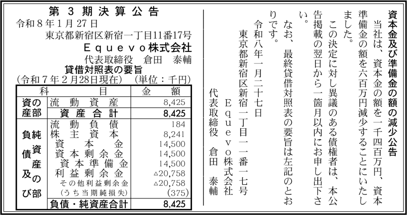| 会社名 | Equevo株式会社 |