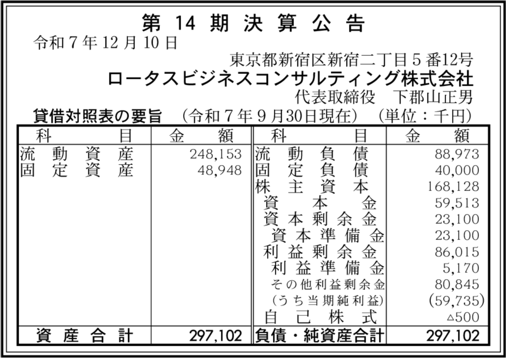 | 会社名 | ロータスビジネスコンサルティング株式会社 |