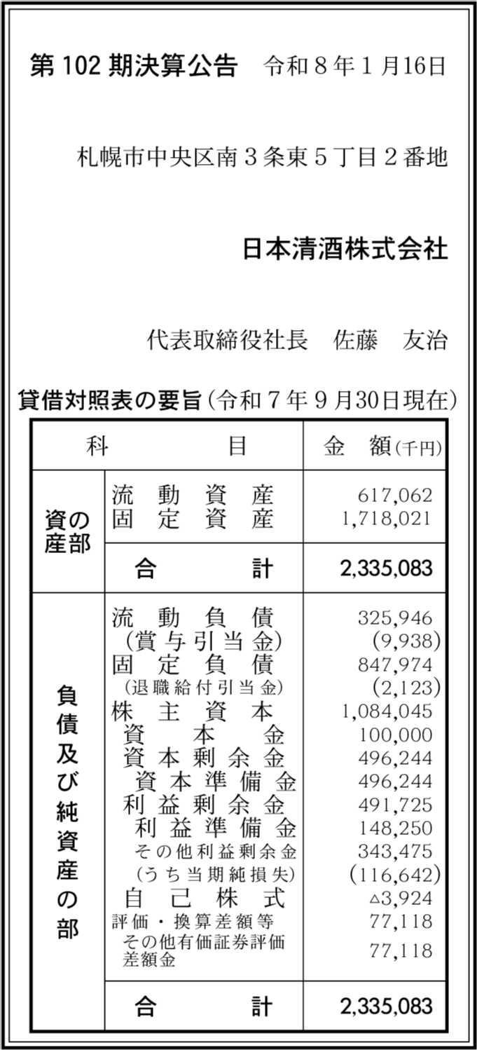 | 会社名 | 日本清酒株式会社 |