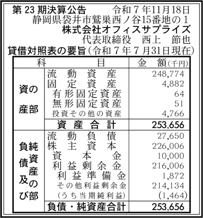 株式会社ヴィレジオ 静岡県袋井市 【2025年4月期】 |