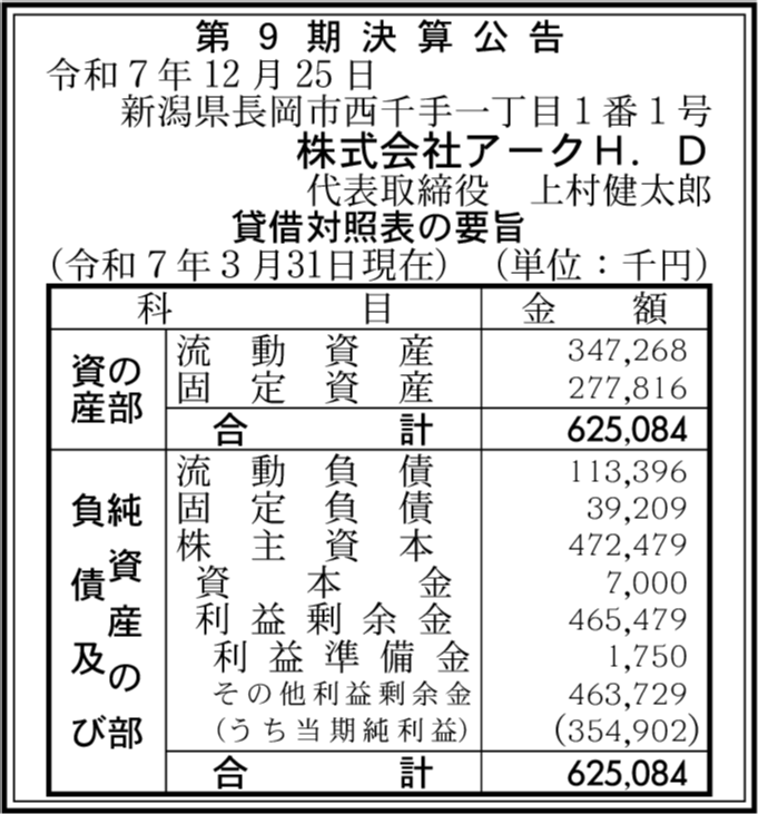 株式会社アークH.D閉鎖済み 新潟県長岡市 【2024年3月期】 |