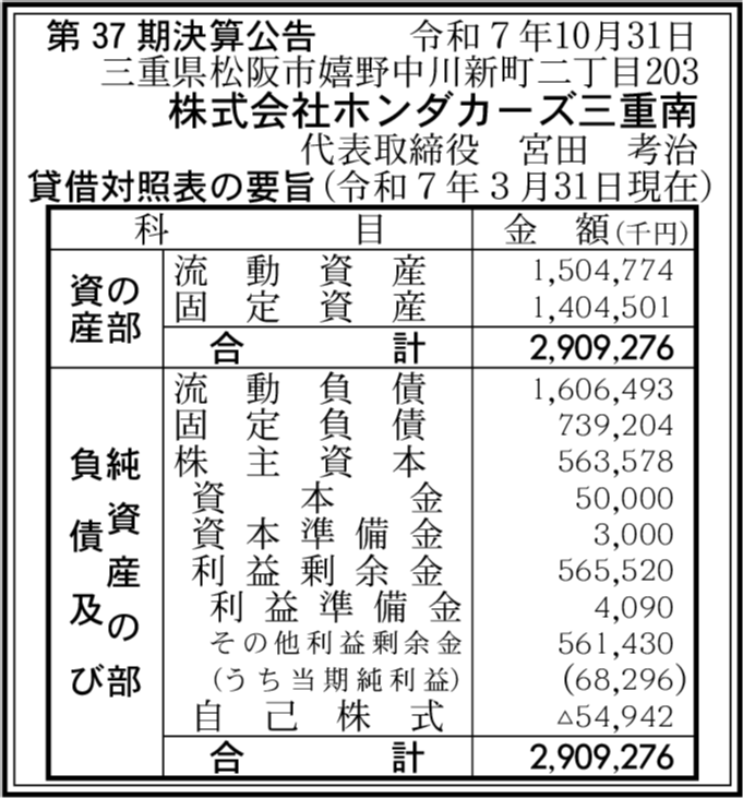 株式会社ホンダカーズ伊賀北閉鎖済み 三重県伊賀市 【2021年3月期】  |