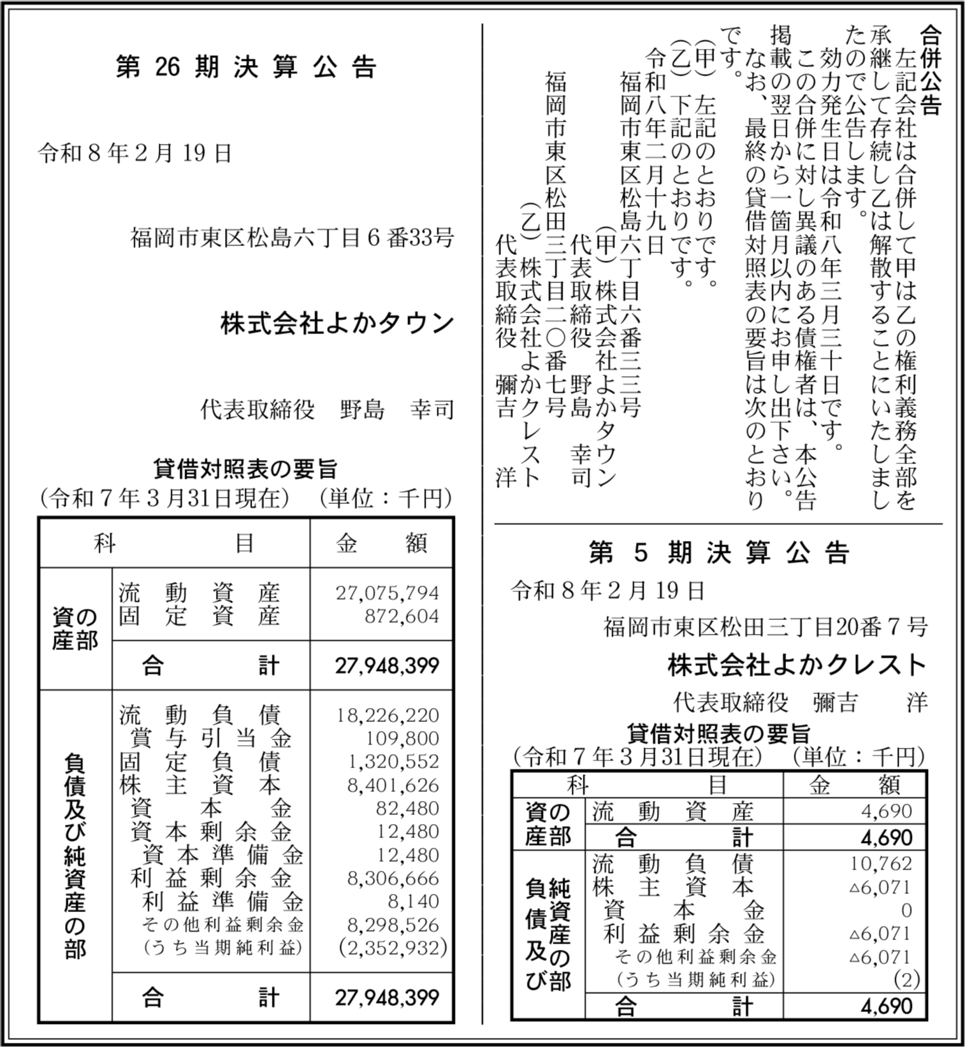 株式会社よかクレスト 福岡市東区 【2025年3月期】 |