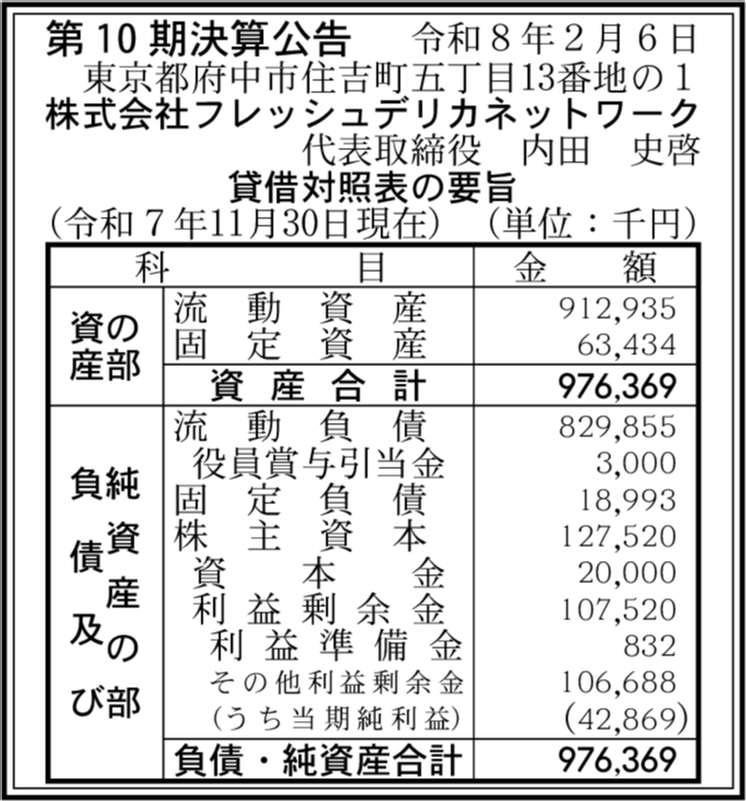 | 会社名 | 株式会社フレッシュデリカネットワーク |
