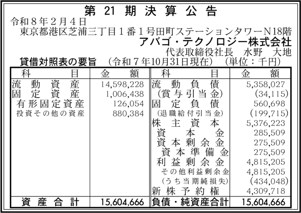 | 会社名 | アバゴ・テクノロジー株式会社 |