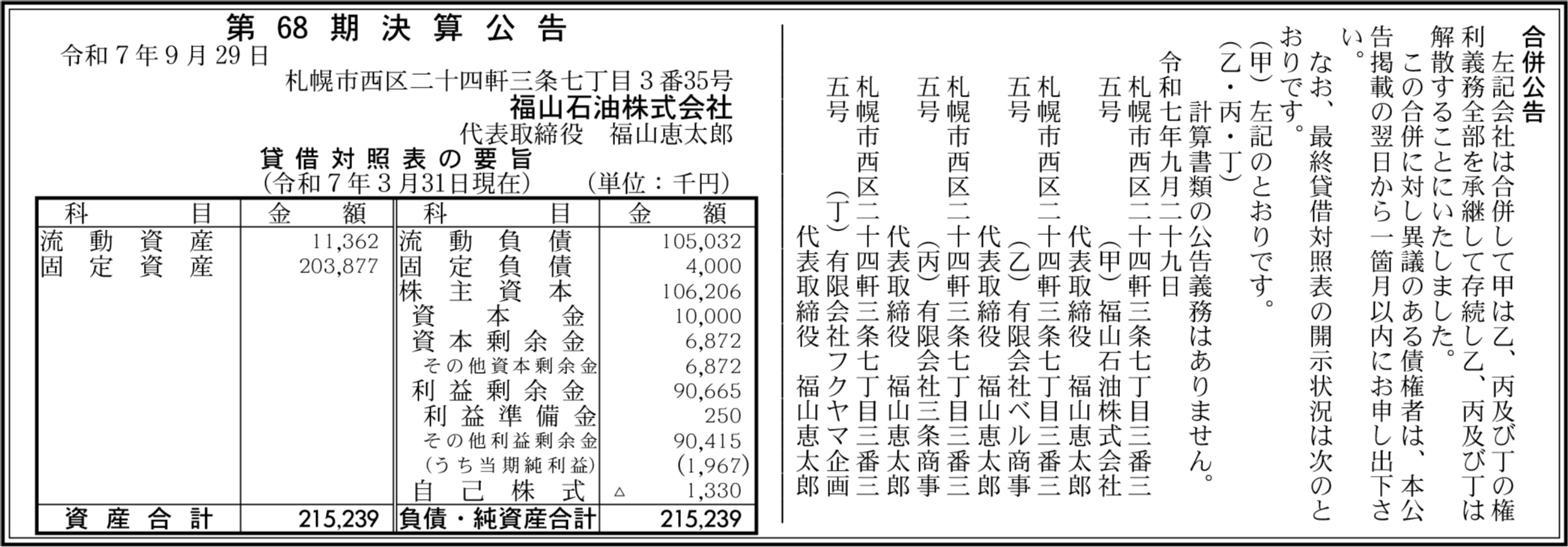 石屋商事株式会社 札幌市西区 【2025年4月期】 |