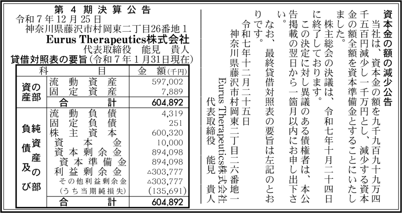 | 利益剰余金 | ▲3億377万7,000円 (赤字拡大) |