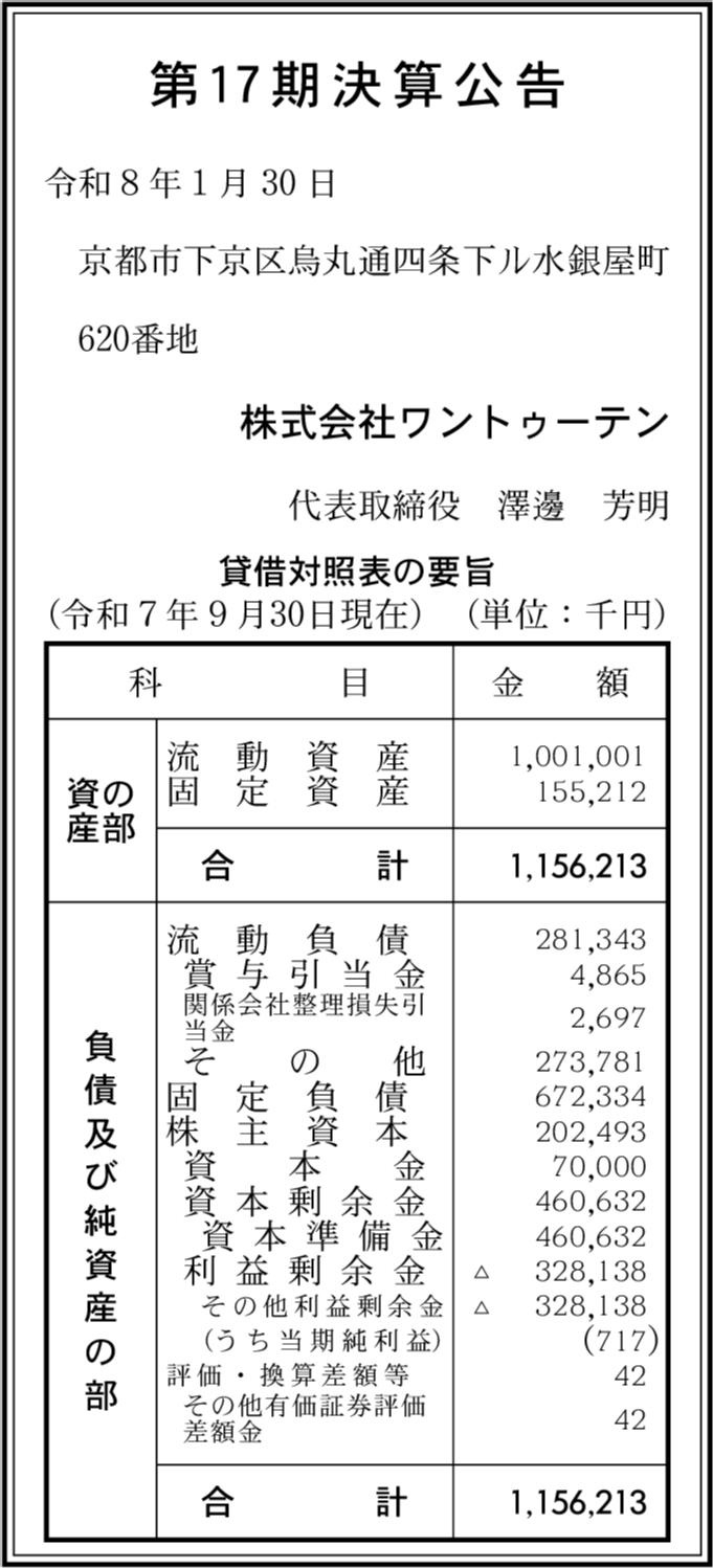 株式会社ワントゥーテンイマジン閉鎖済み 京都市下京区 【2024年9月期】 |