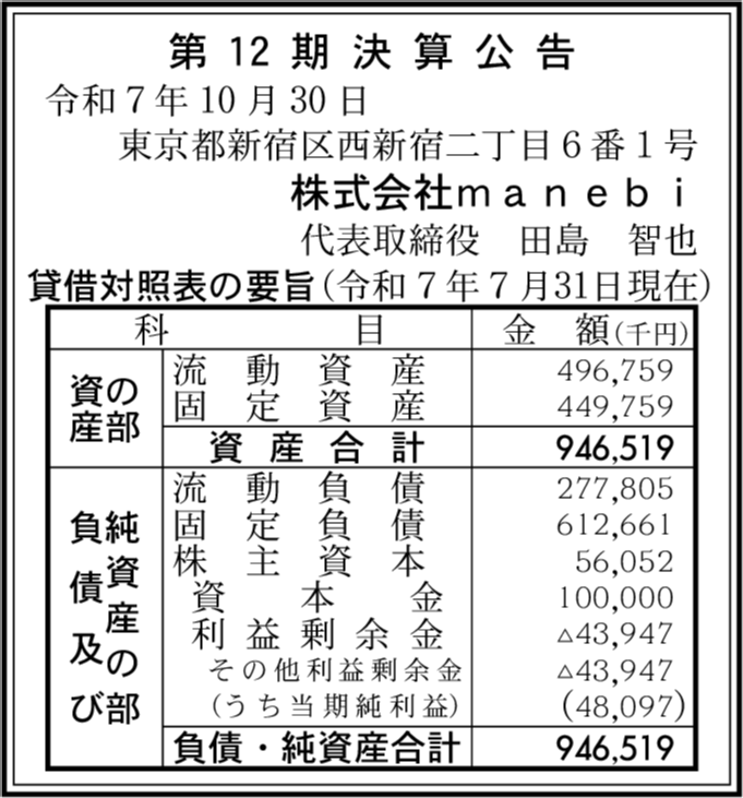 | 会社名 | 株式会社manebi |
