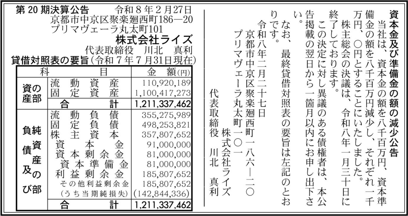 ケーエムジー興産株式会社 京都市中京区 【2025年7月期】 |