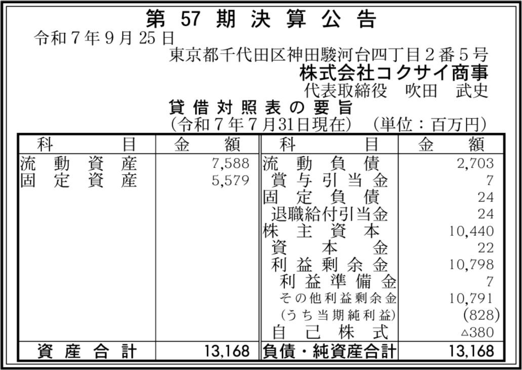 | 会社名 | 株式会社コクサイ商事 |