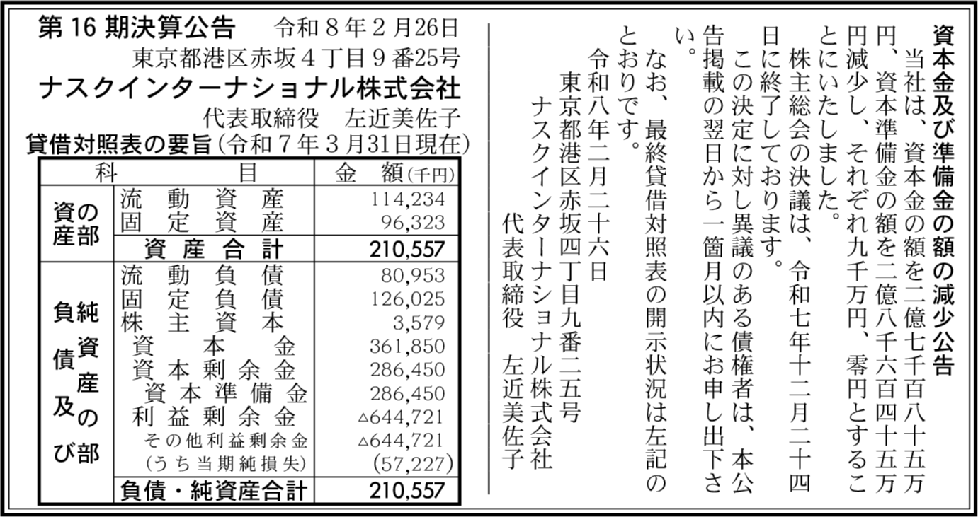 | 会社名 | ナスクインターナショナル株式会社 |