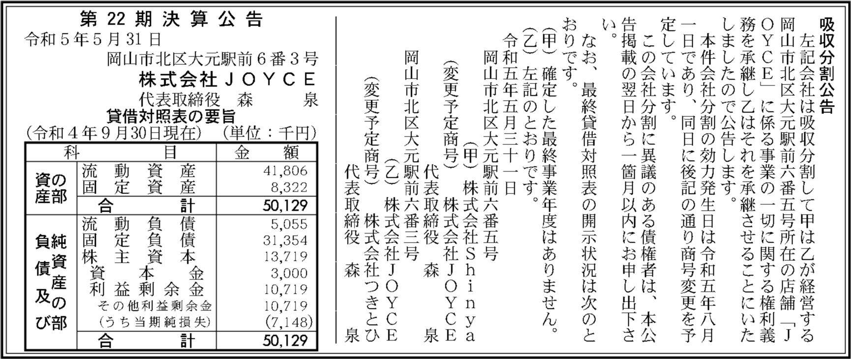 | 会社名 | 株式会社JOYCE |