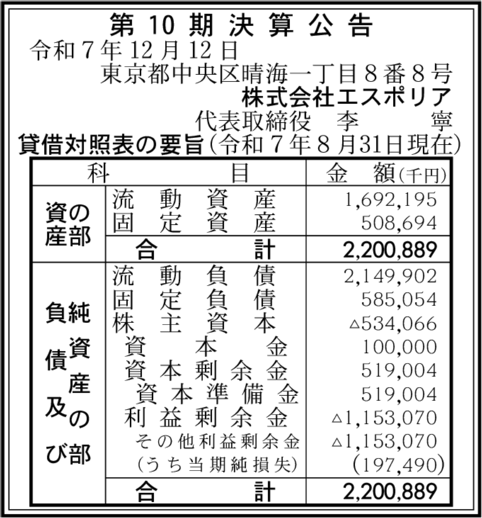 | 会社名 | 株式会社エスポリア |