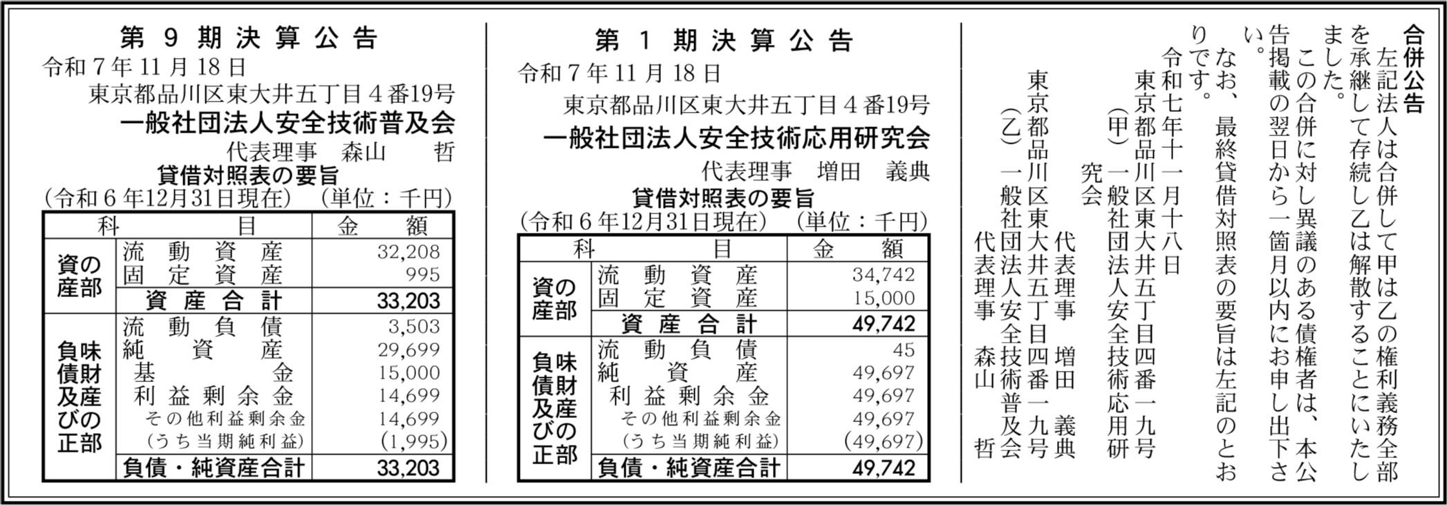 一般社団法人安全技術普及会 東京都品川区 【2024年12月期】 |
