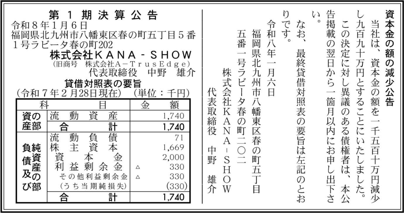 | 会社名 | 株式会社KANA-SHOW |