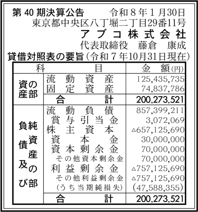 | 利益剰余金 | ▲7億5,712万5,690円 (赤字拡大) |