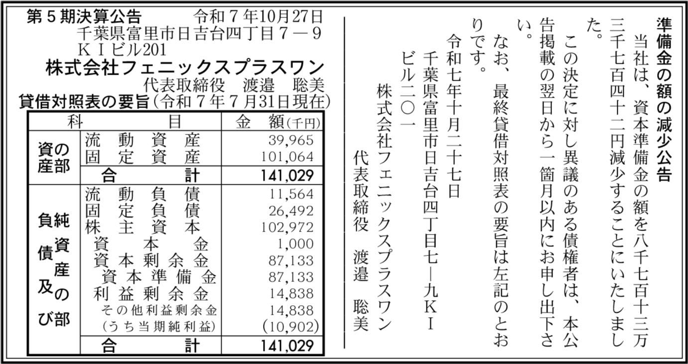 | 会社名 | 株式会社フェニックスプラスワン |