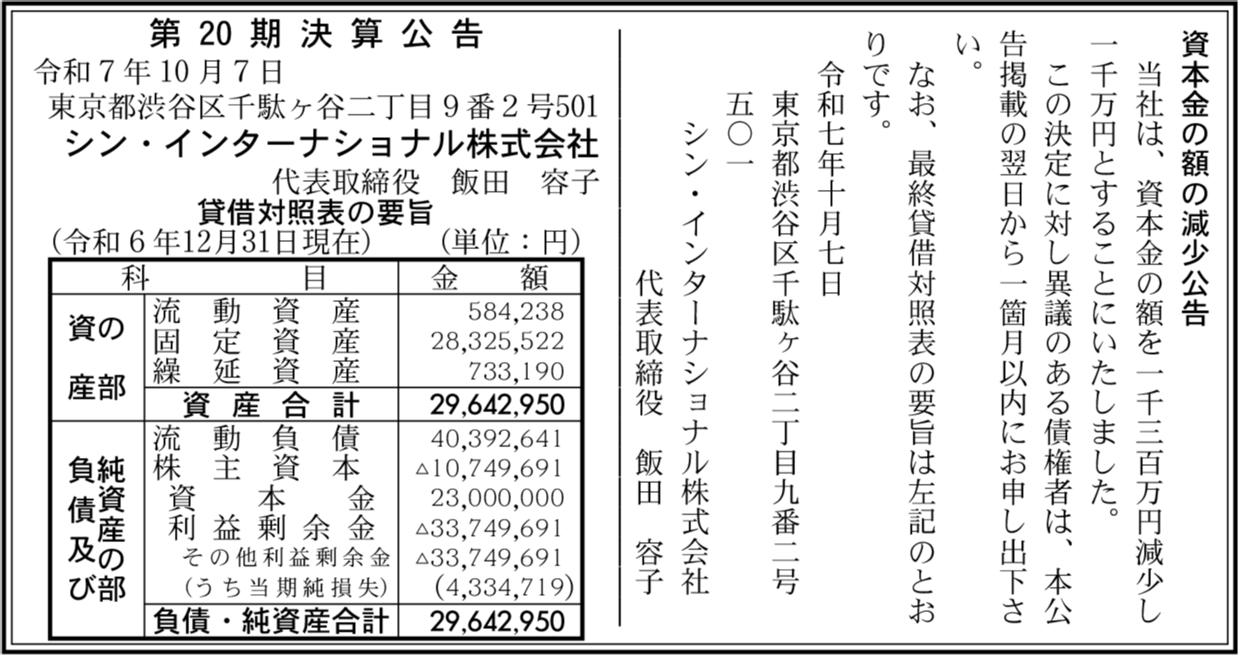 会社名 | シン・インターナショナル株式会社 |