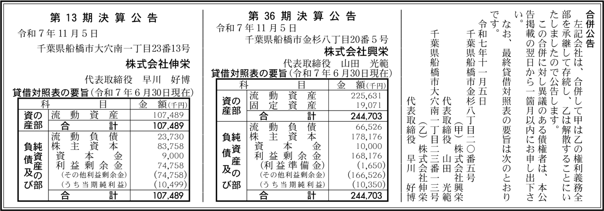 株式会社伸栄 千葉県船橋市 【2025年6月期】 |