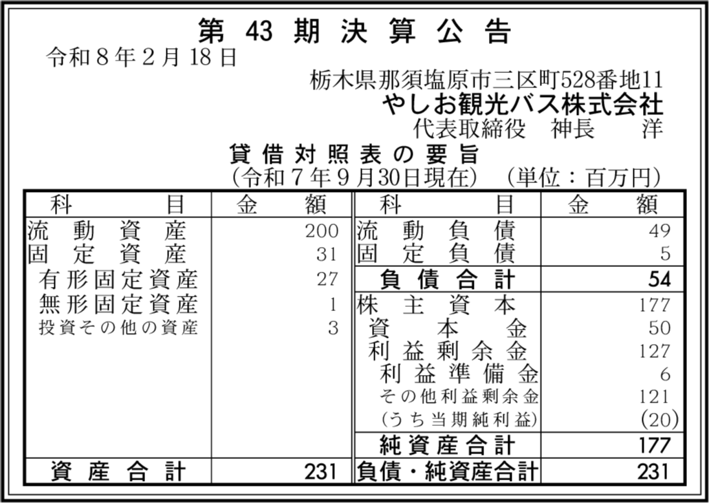 那須交通株式会社 栃木県大田原市 【2025年9月期】 |