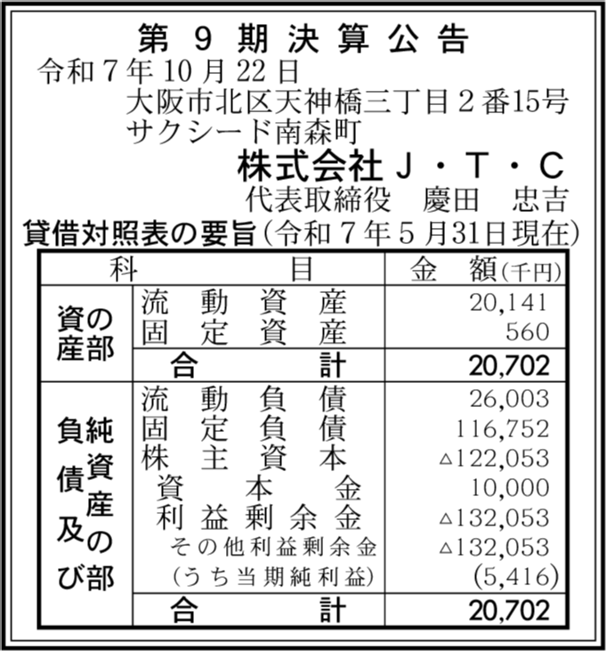 | 会社名 | 株式会社J・T・C |