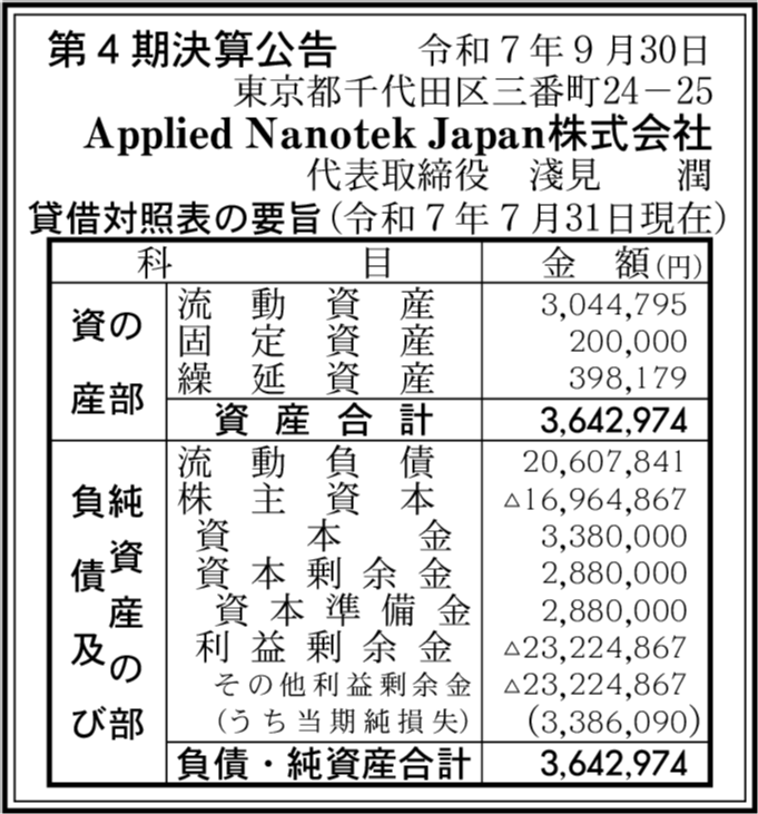 | 会社名 | Applied Nanotek Japan株式会社 |